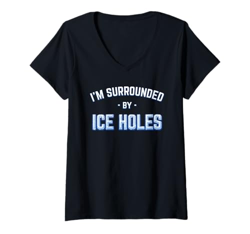 Womens Funny Ice Fishing Surrounded by Ice Holes V-Neck T-Shirt