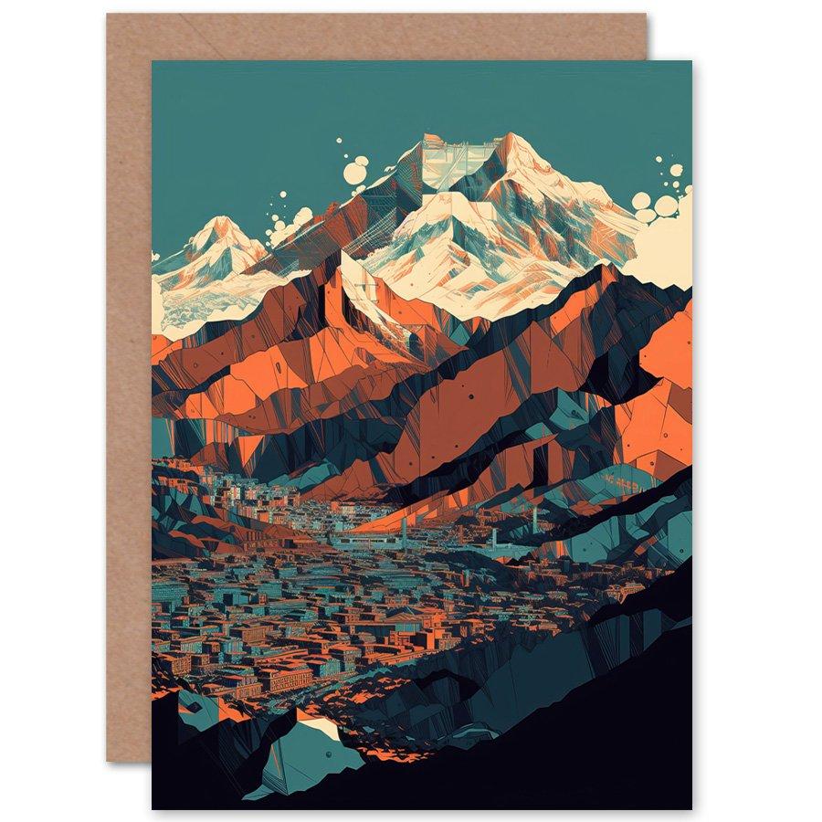 Modern City Surrounded by Tall Mountains Landscape Travel Birthday Sealed Greetings Card