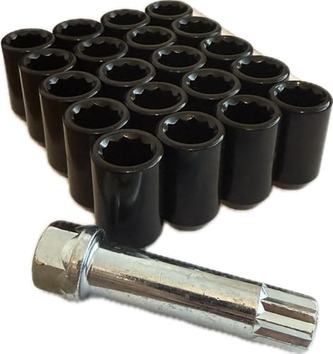 BIMECC Set of 20 High Tensile Steel M12x1.5 Slimline Wheel Nuts with 17Hex Tuner Key - Black - Compatible with Ford, Mazda, Honda, Kia, Suzuki