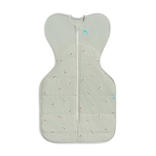 Love To Dream™ Swaddle UP™ Transition Bag, Large 8.5-11 kg, Bees Olive, Snug Fit, Zip-Off Wings, 2.5 Tog For 16-20°C Temp, Machine Washable Quilted Stretch Cotton, 2 Zips, Easy Nappy Change