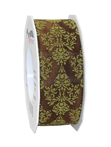 Präsent - Brixen Wired & Printed Ribbon Espresso-Olive 40 mm Width, 20 m Length