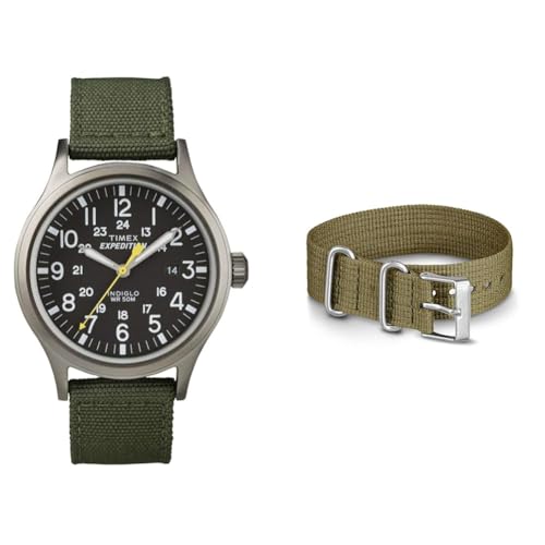 Timex Expedition Scout Men's 40mm Watch T49961 & Unisex 20mm Olive Green Slip-Thru Strap TW7C05700