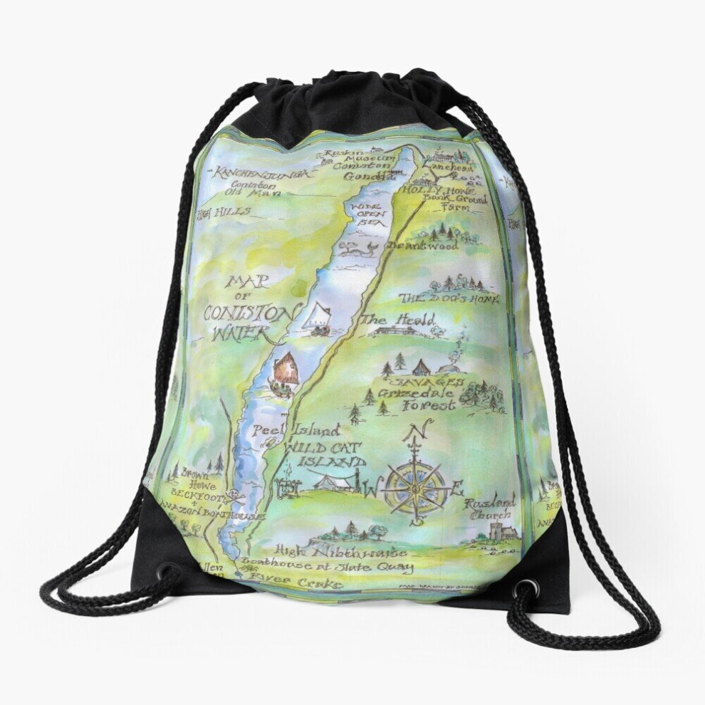 Drawstring Bag Swallows and Amazons map of Coniston Water - Sport Gym Shoe Backpack