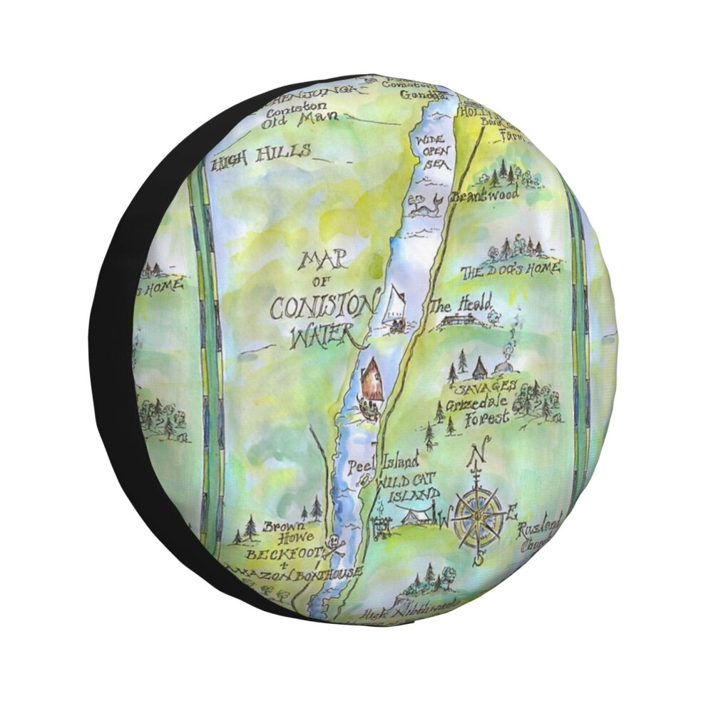 (Swallows And Amazons Map Of Coniston Water - _671) Spare Tire Cover for RV Trailer, Waterproof Wheel Covers Protectors Camper Fit for Jeep Wrangler R