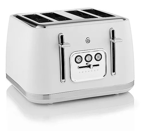 Swan Symphony 4 Slice Toaster White – 7 Browning Levels, Defrost & Reheat