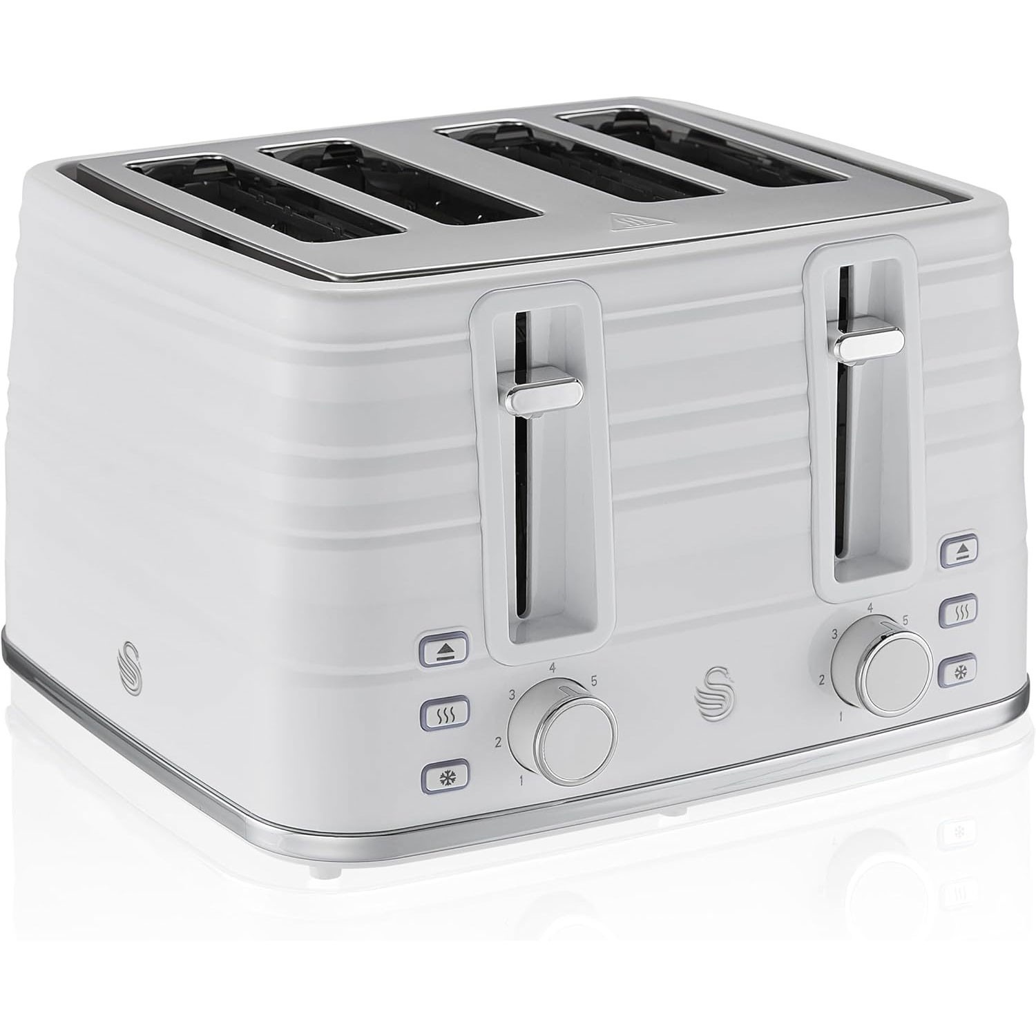 Swan ST19025WHT Elegance 4 Slice Toaster with 7 Browning Levels, Defrost and Reheat functions, Anti-Jam and Cord Storage, 2100W, White