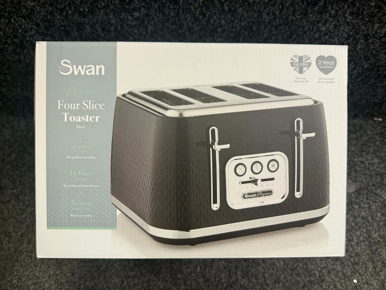 Swan Elegance 4 Slice Toaster Textured Black Gloss Finish Chrome Trim ST19025BLK