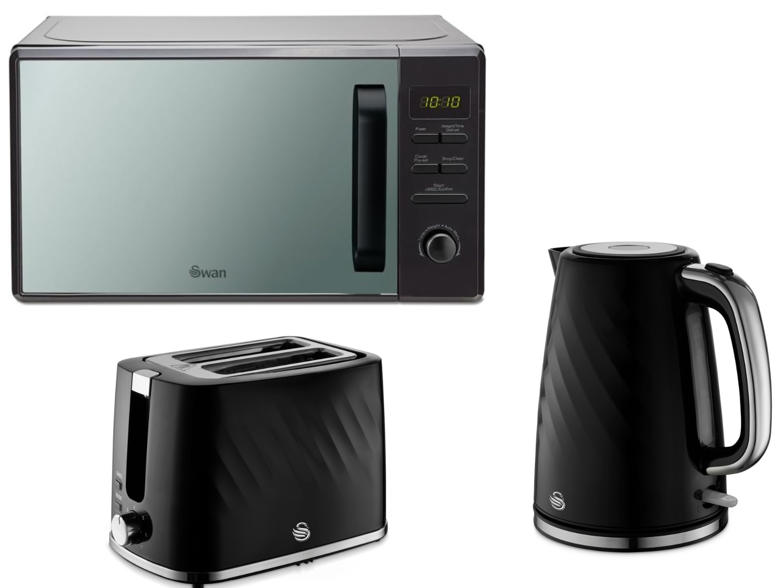 Swan Wave Black Kettle Toaster & Microwave Set