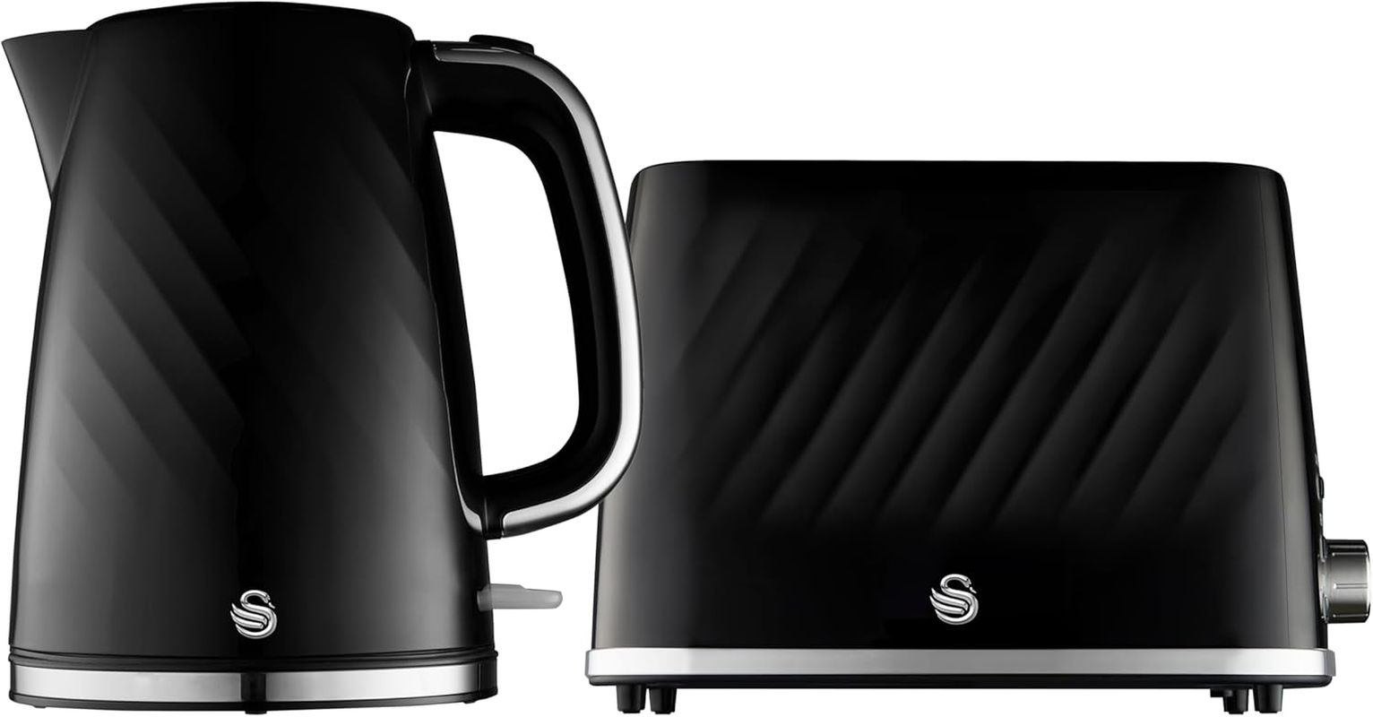 Swan Elegance Kitchen Set, 1.7L Kettle & 4 Slice Toaster, Black, SK14016BLK EACH