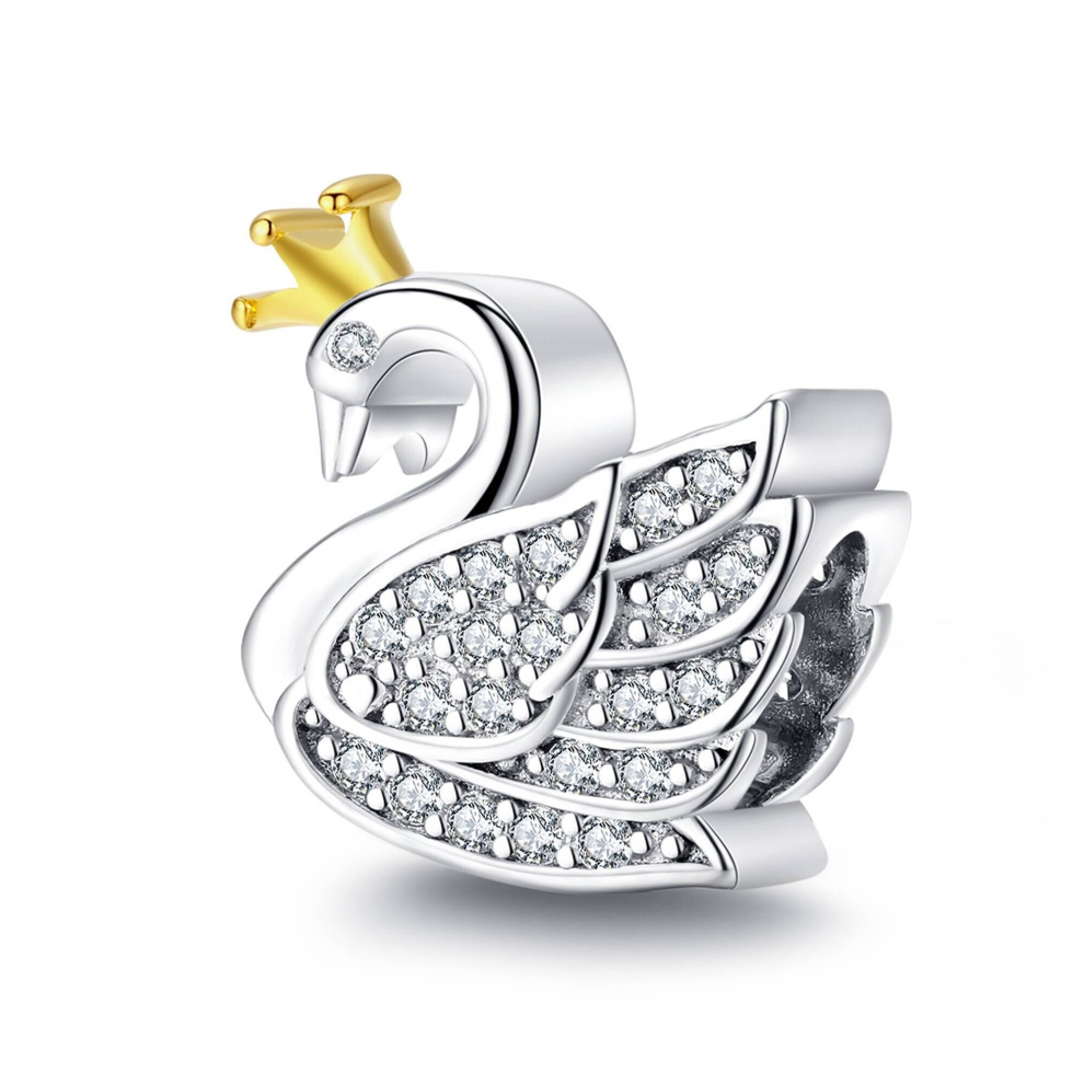 925 Sterling Silver Princess Swan Charm Bead Fits European Charm Bracelet
