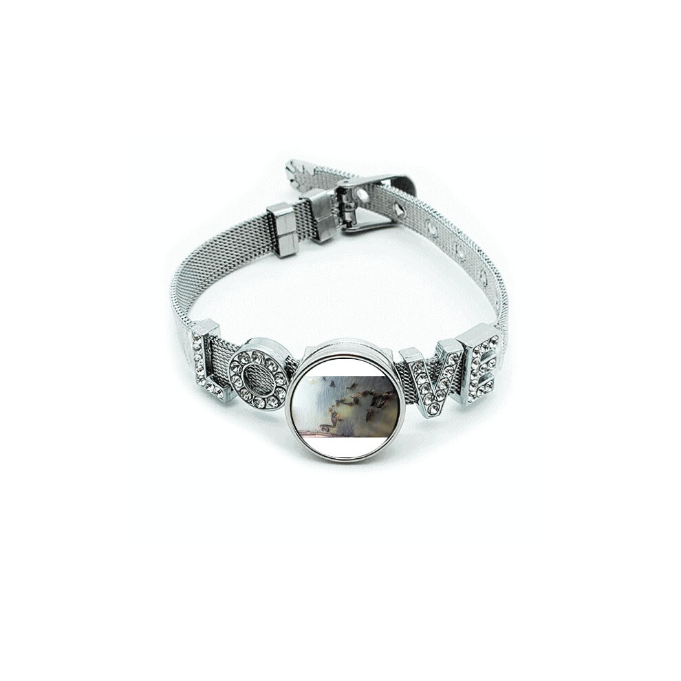 Black Swan Art Deco Fashion Bracelet Wristband Crystal Love Adjustable Bangle