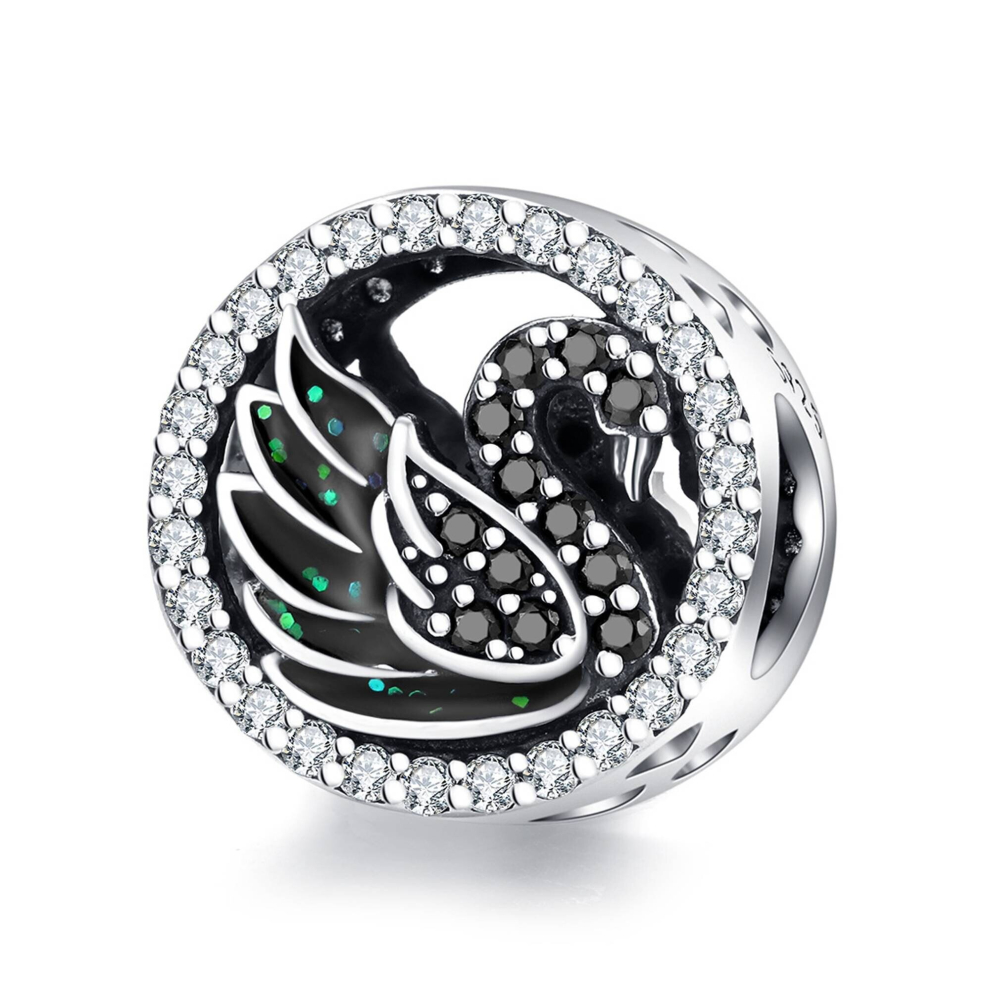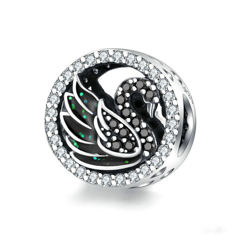 Black Swan Beads Silver plating Round Charms Fit Bracelet Pendant Jewelry