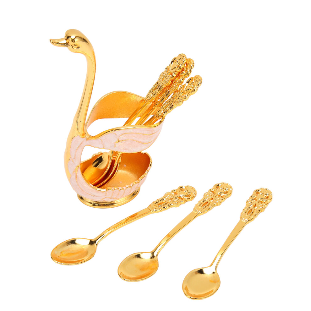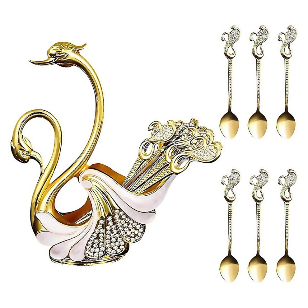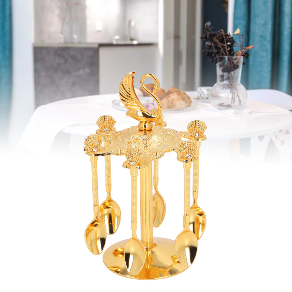 Decorative Metal Swan Base Coffee Spoon Holder with 6pcs Spoons Set, Tea Set Holder, Tableware Storage