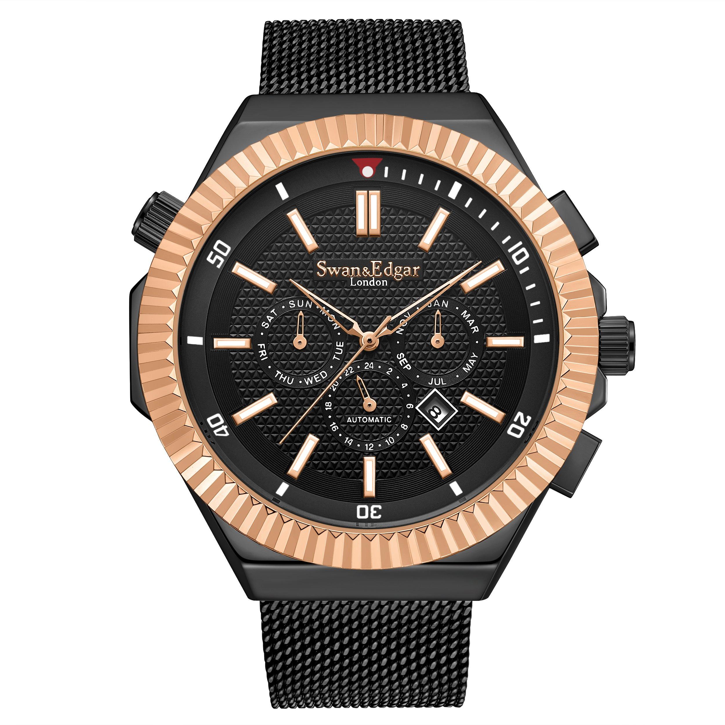 SWAN & EDGAR Black and Rose Gold Automatic Watch se10088284
