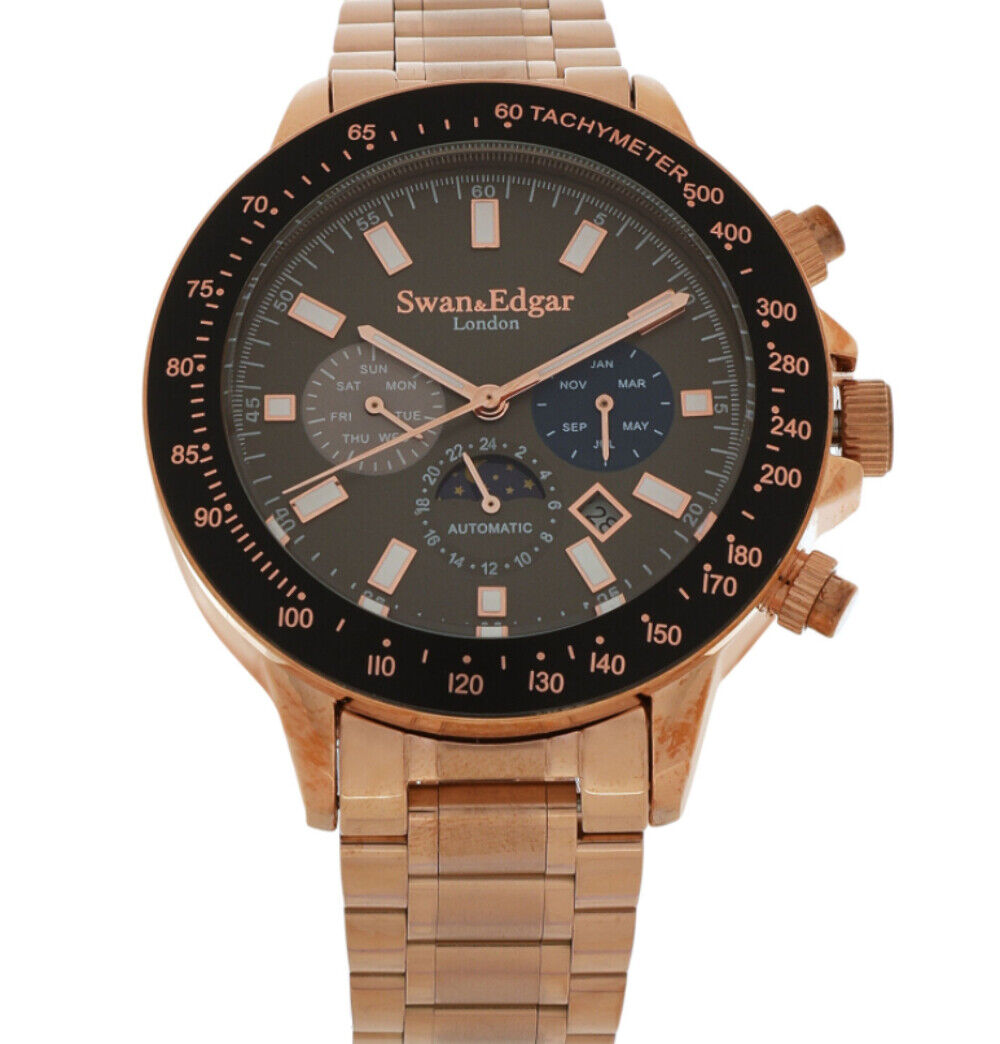 SWAN & Edgar Rose Gold Tone Chronograph TACHYMETER Sports Automatic Watch SE0035