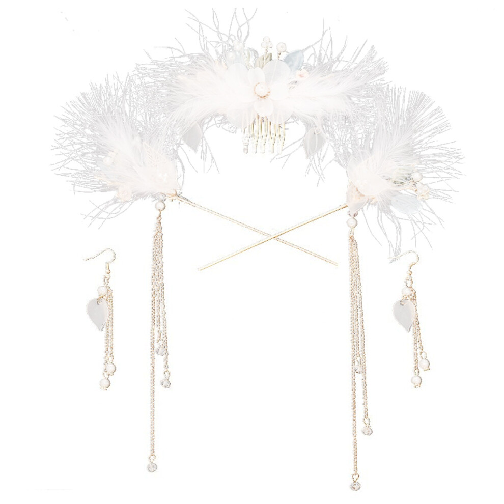 Cocktail Party Accessory Set, Gatsby-Themed Event Ostrich White Swan Feather Hairpins, Sequined Showgirl Hair Band for Memorable Gatherings (1Set)