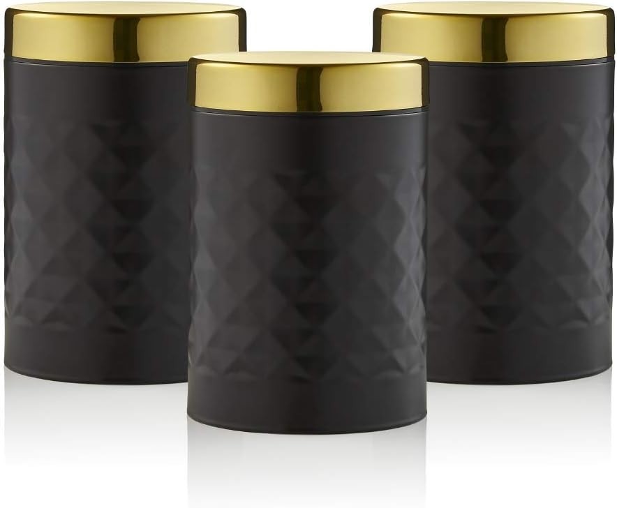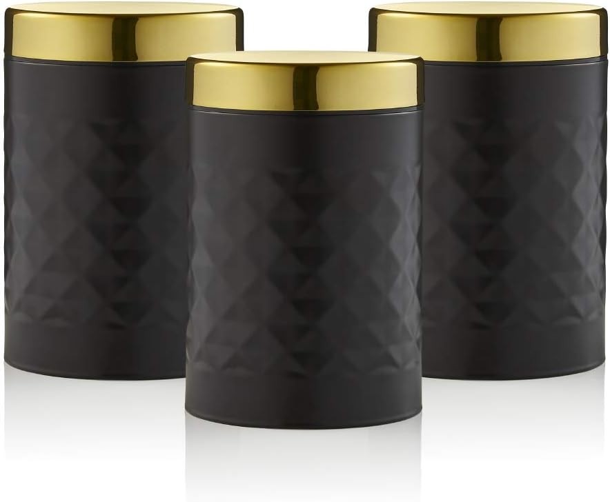 Swan SWKA17523BLKN Gatsby Set of 3 Kitchen Canisters, Tea Coffee Sugar, Black, One Size