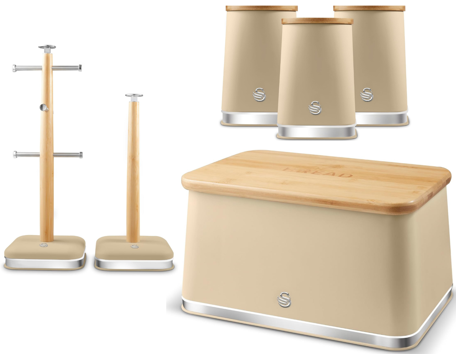 Swan Nordic Oatmeal Bread Bin Canisters Mug Tree Towel Pole Kitchen Storage Set
