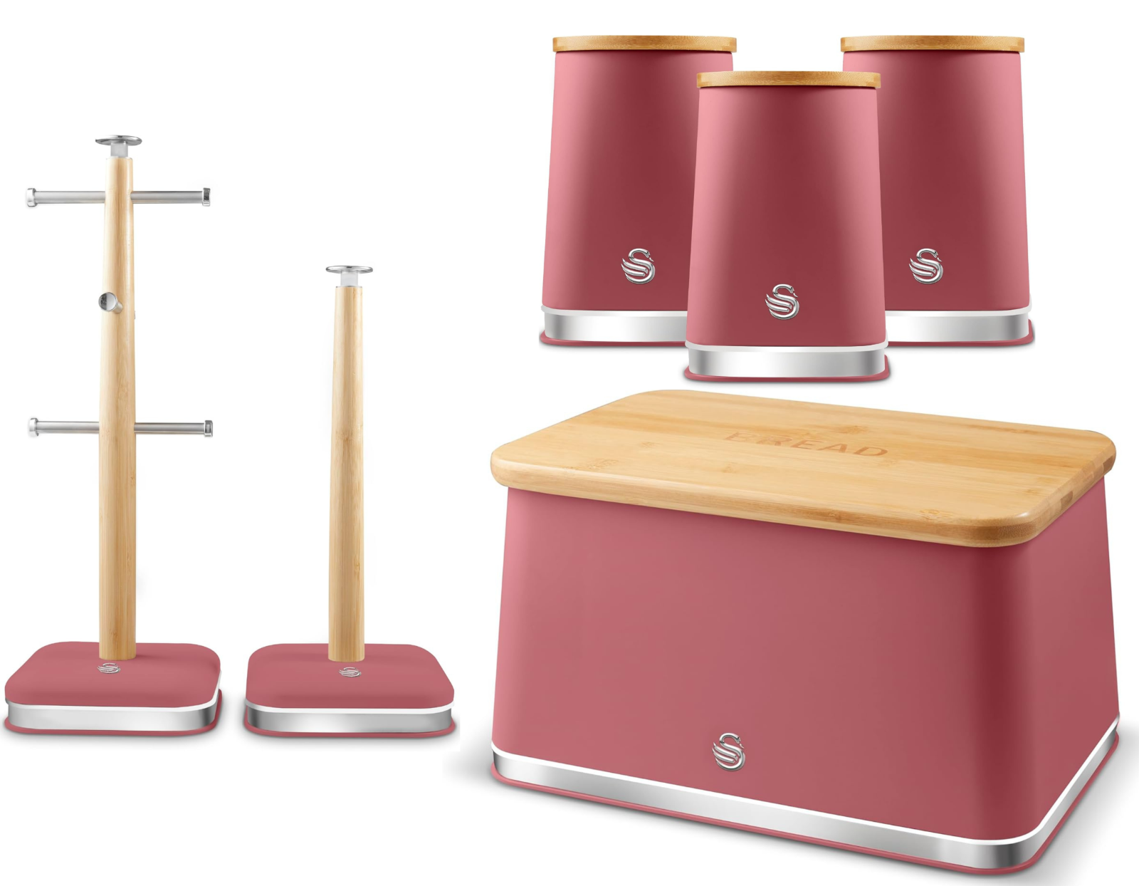 Swan Nordic Fuchsia Rose Bread Bin Canisters Mug Tree Towel Pole Storage Set