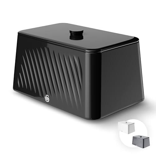 Swan Solace 16L Bread Bin, Large Capacity, Worktop Kitchen Storage, Suitable for Loaves, Rolls and Bakes, Lift Up Hinged Lid, Easy Clean and Durable, H16.6 x W44 x D22cm, Black, SWKA18540BLK