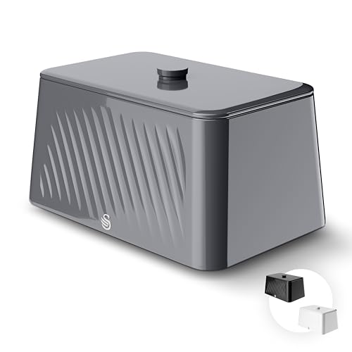 Swan Townhouse Graphite Bread Bin with Roll Top Lid Modern Design SWKA18529GRP
