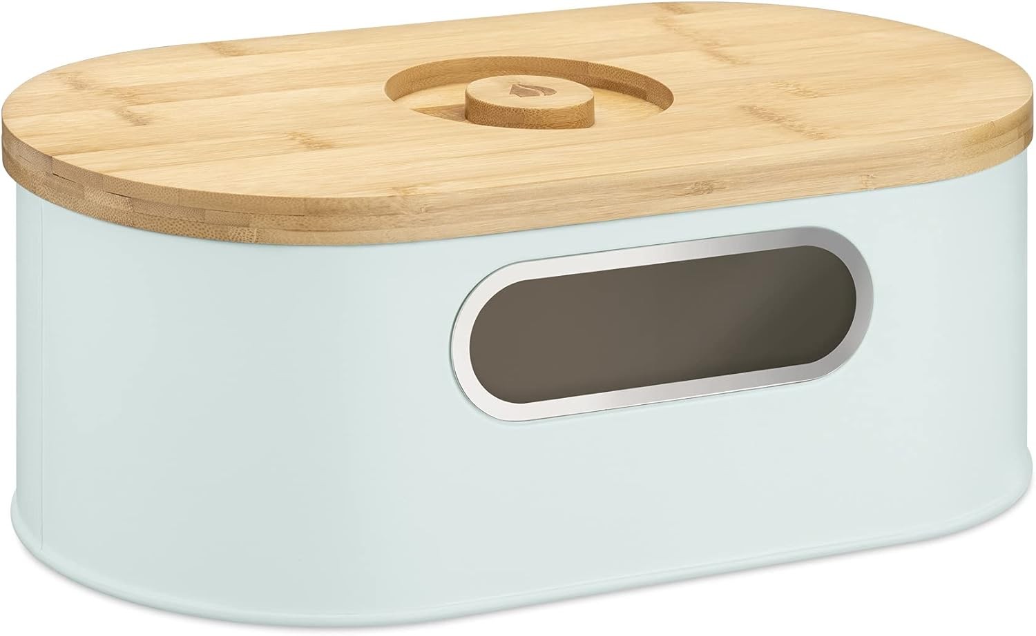 LARS NYSØM Bread Box I Metal bread box for long lasting freshness I Baked goods Bin with bamboo lid usable as cutting board I 13.4x7.3x5.3In (Sage Green)
