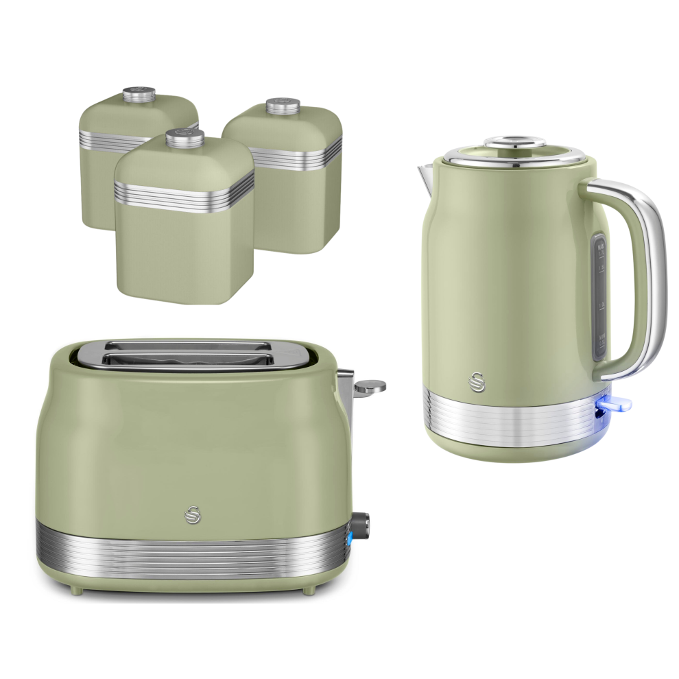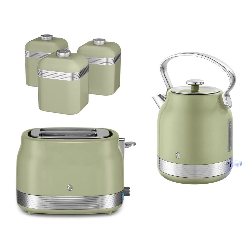 Swan Retro Revive Green Jug Kettle 2 Slice Toaster Canisters Kitchen Bundle Set