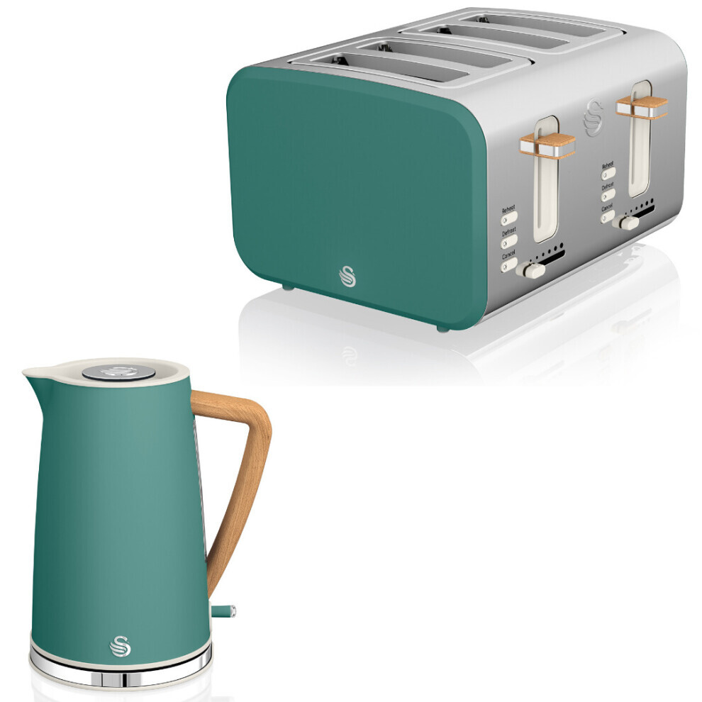 Swan Nordic Green Kitchen Set with 1.7 Litre Kettle and 4 Slice Toaster, Wood Effect and Soft Tough Matte Finish, Stainless Steel, STP2091GREN
