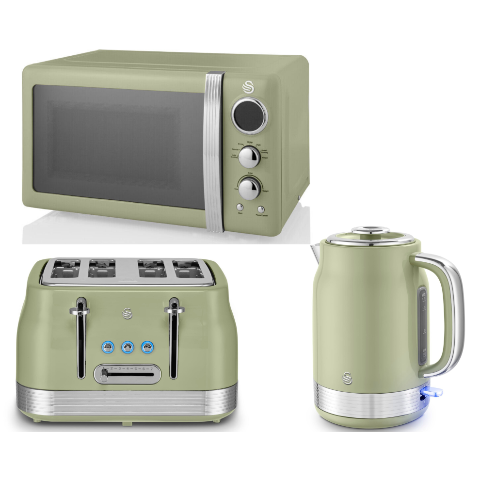 Swan Retro Revive Green Jug Kettle 4 Slice Toaster & 800W Microwave