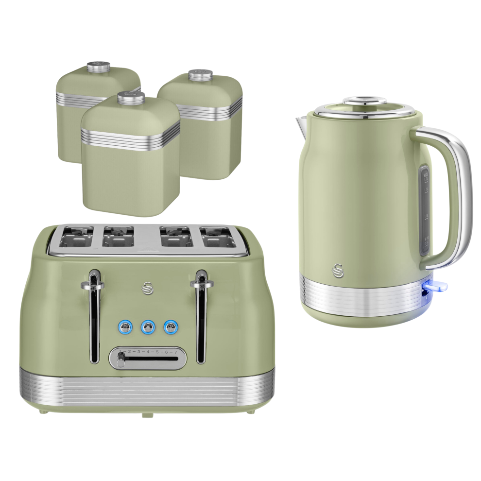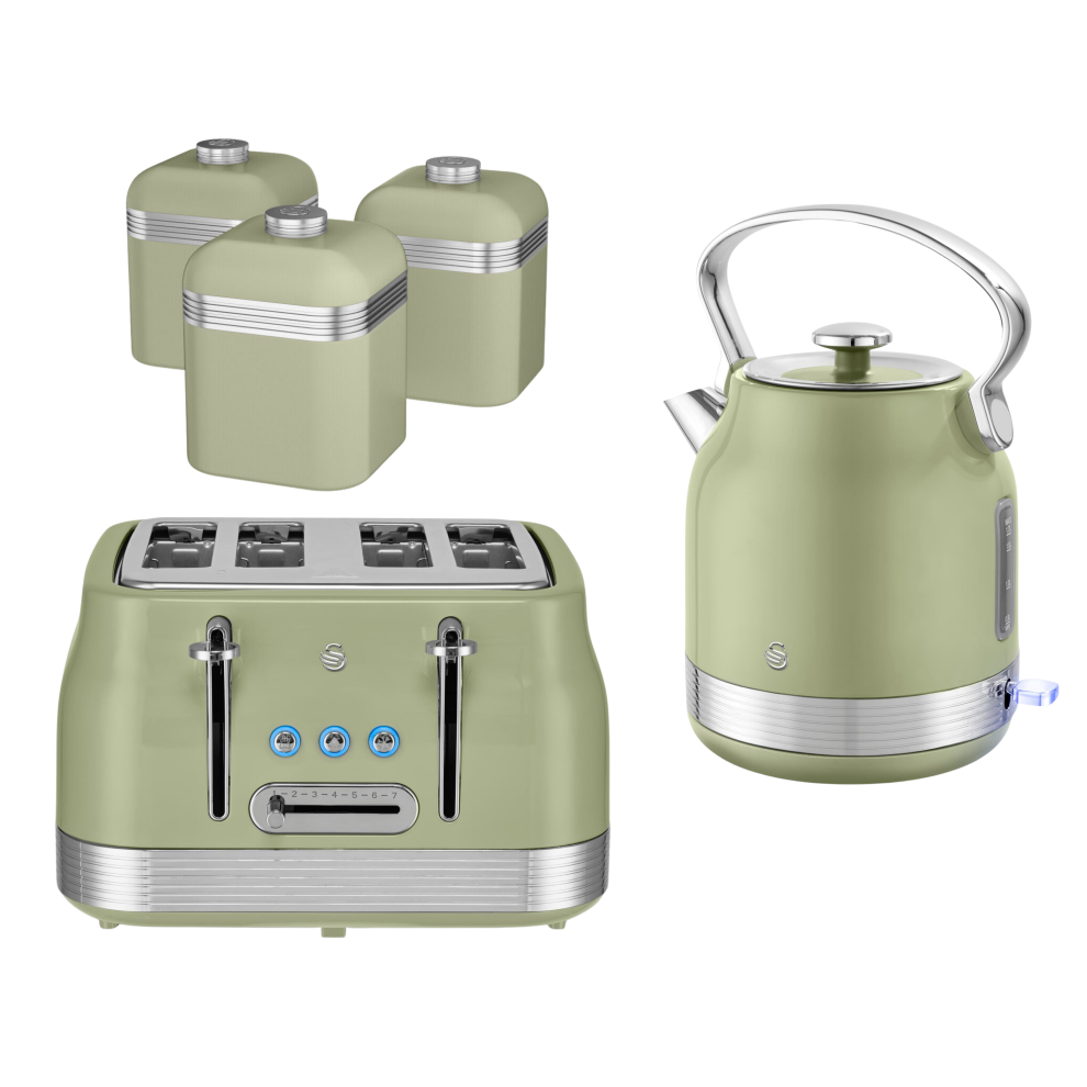 Swan Retro Revive Green Kettle 4 Slice Toaster & Canisters