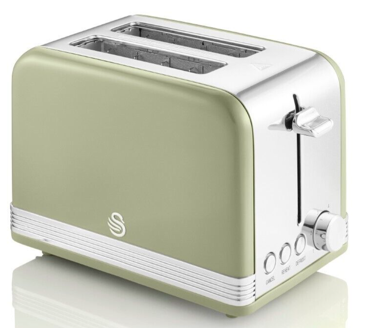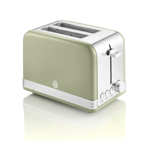 Swan Retro Revive Green 2 Slice Toaster Chrome Accents ST19028GRN Retro Design