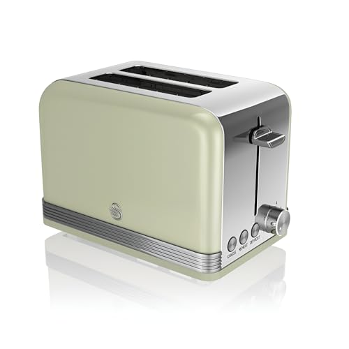 Swan ST19010GN Retro 2-Slice Toaster with Defost/Reheat/Cancle Functions, Cord S