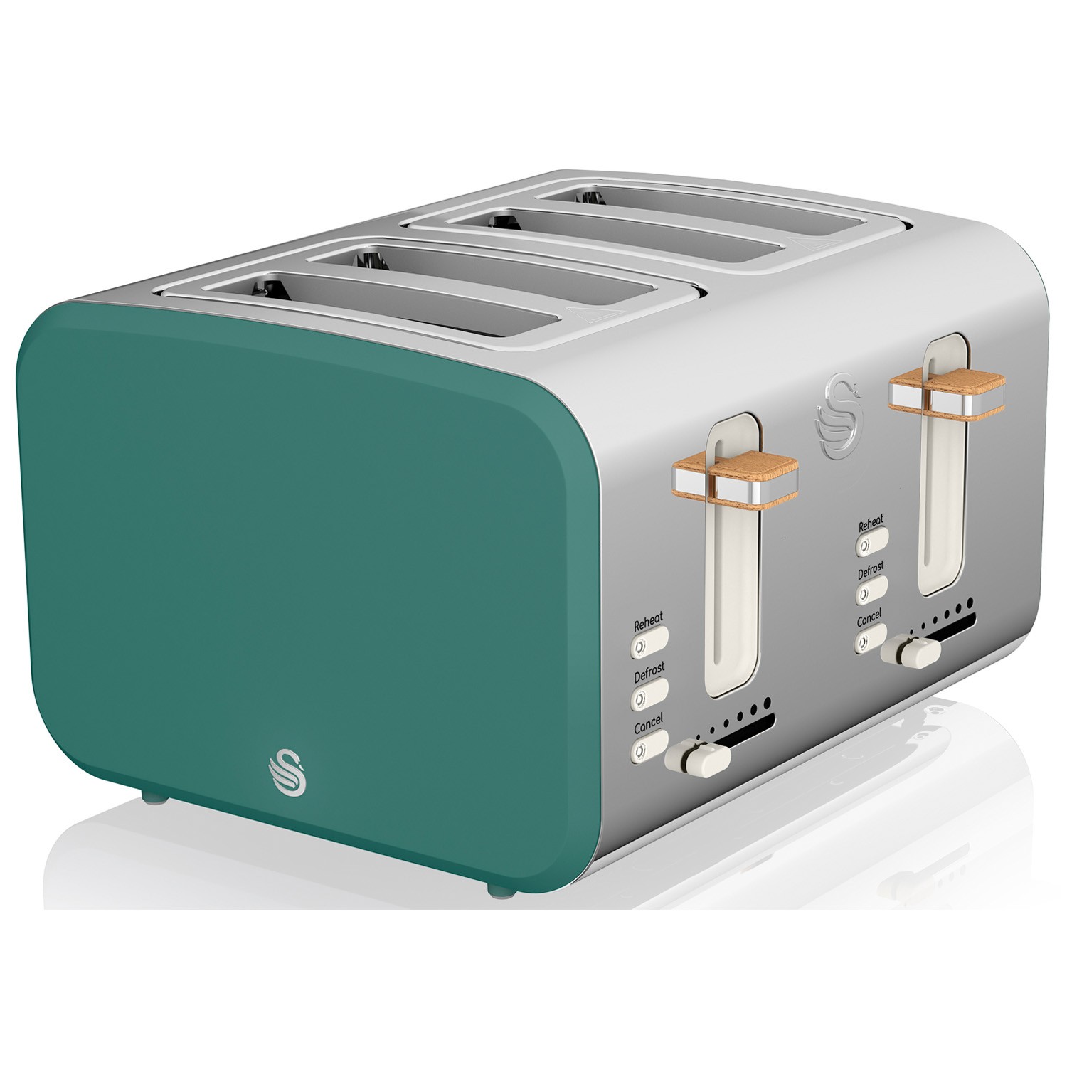 Swan 4 Slice Green Nordic Style Defrost Reheat Removable Crumb Tray Loaf Toaster