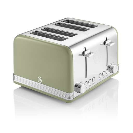 Swan Retro Revive Green 4 Slice Toaster Retro Design Chrome Accents ST19029GRN