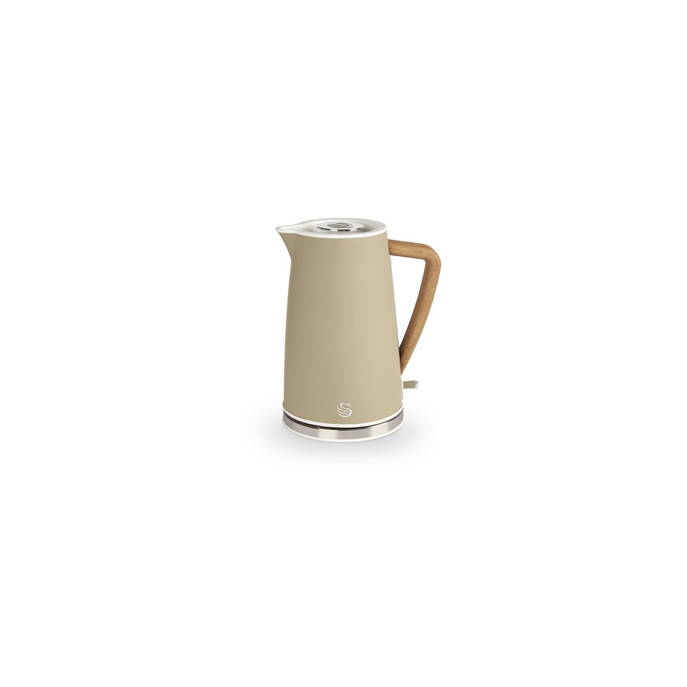 Swan SK14610WHTN Nordic Jug Kettle, Wood Effect, Soft Touch, 1.7L 3KW, Matte Cotton White