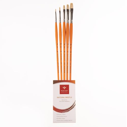 Pan Art Flat Brush Set Natural Bristles No.02-10 - Oil Painting - 5 Pieces