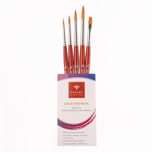 Pan Art Brush Set Synthetic No. 04-12 - Acrylic & Watercolor - 5 Pieces