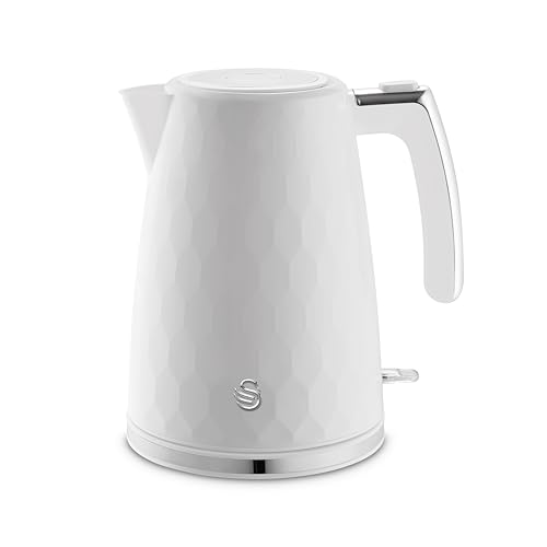 Swan SK14016WHT Elegance Cordless Kettle, Sleek Textured Gloss Finish with Rapid Boil and Boil Dry Protection, 1.7 Litres, 3000W, White