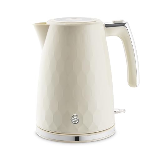 Swan Hexton 1.7L Electric Kettle, 3KW Rapid Boil, Flip Top Lid, Removable Limescale Filter, 360-Degree Base, Cord Storage, Cream with Chrome Accents, SK19038CRM