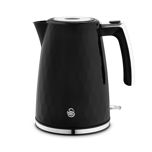 Swan SK14016BLK Elegance Cordless Kettle, Sleek Textured Gloss Finish with Rapid Boil and Dry Protection, 1.7 Litres, 3000W, Black
