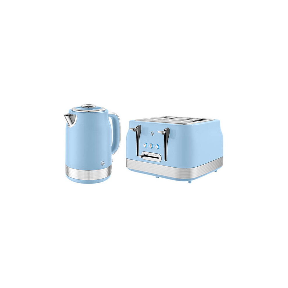 Swan Retro Revive Blue Jug 1.7L Kettle & 4 Slice Toaster Kitchen Set