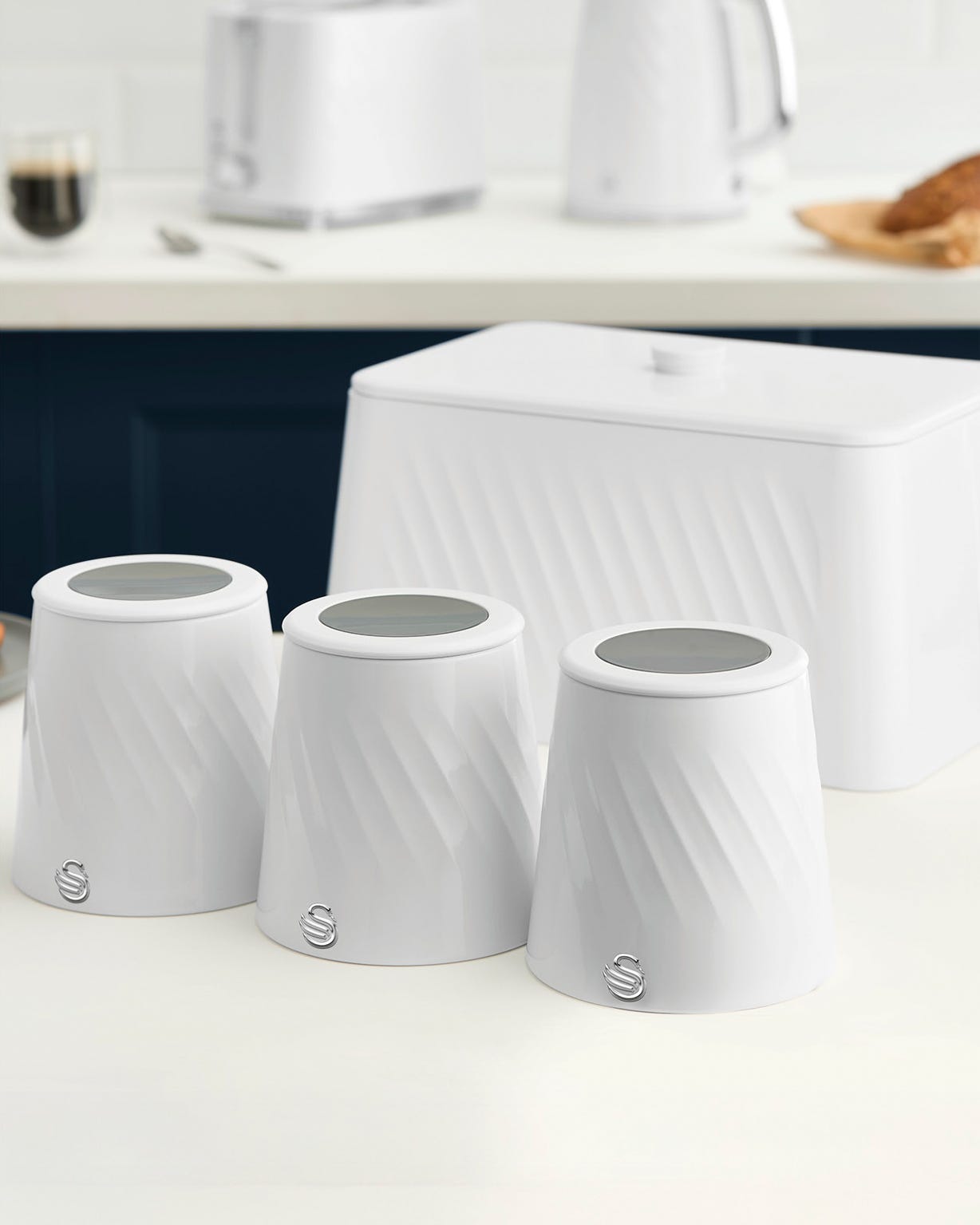 Swan Elegance Bread Bin & Canisters Kitchen Set (White)