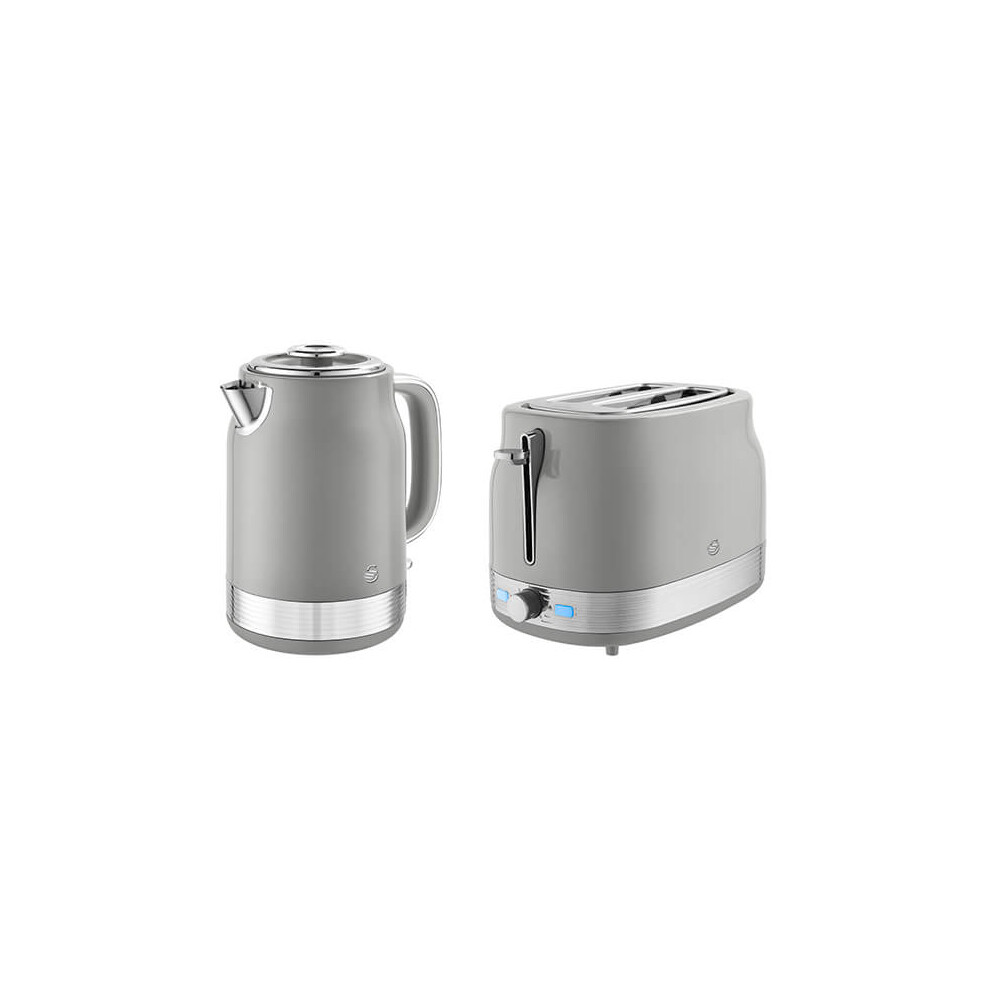 Swan Retro Kitchen Set, 1.7L Kettle and 2-Slice Toaster, Grey EEJB373