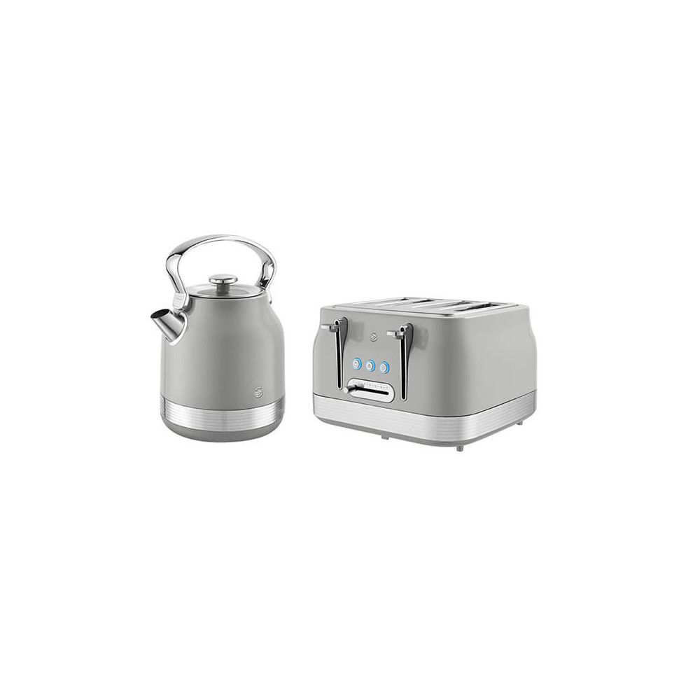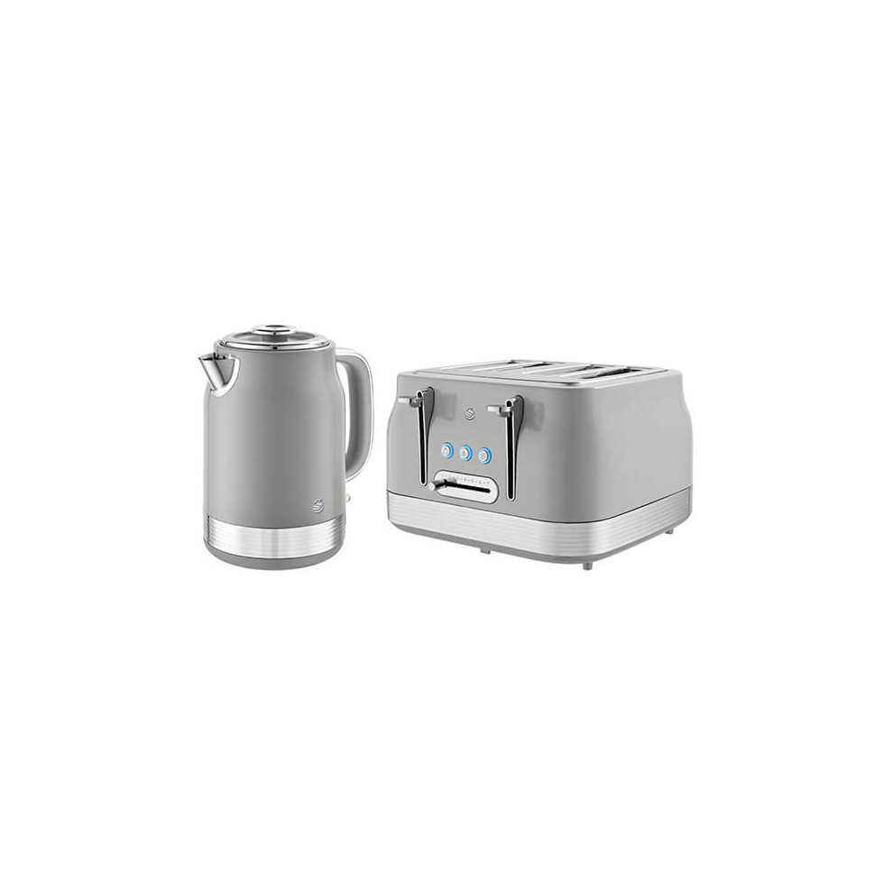 Swan Retro Kitchen Set, 1.7L Kettle and 4 Slice Toaster, Grey EEJB402