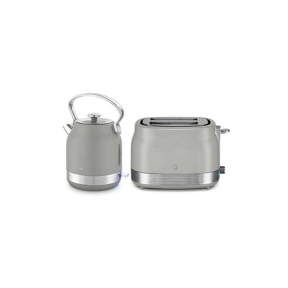 Swan Retro Kitchen Set, 1.7L Rapid Boil Traditional Kettle and 2 Slice Toaster, Non-Slip Feet, Grey, SK14631GRY & ST19028GRY, EEJB351
