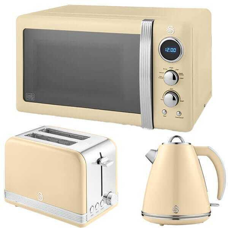 Swan Retro Cream Kettle 1.5L, Toaster 2 Slice & Microwave 20L Digital Set