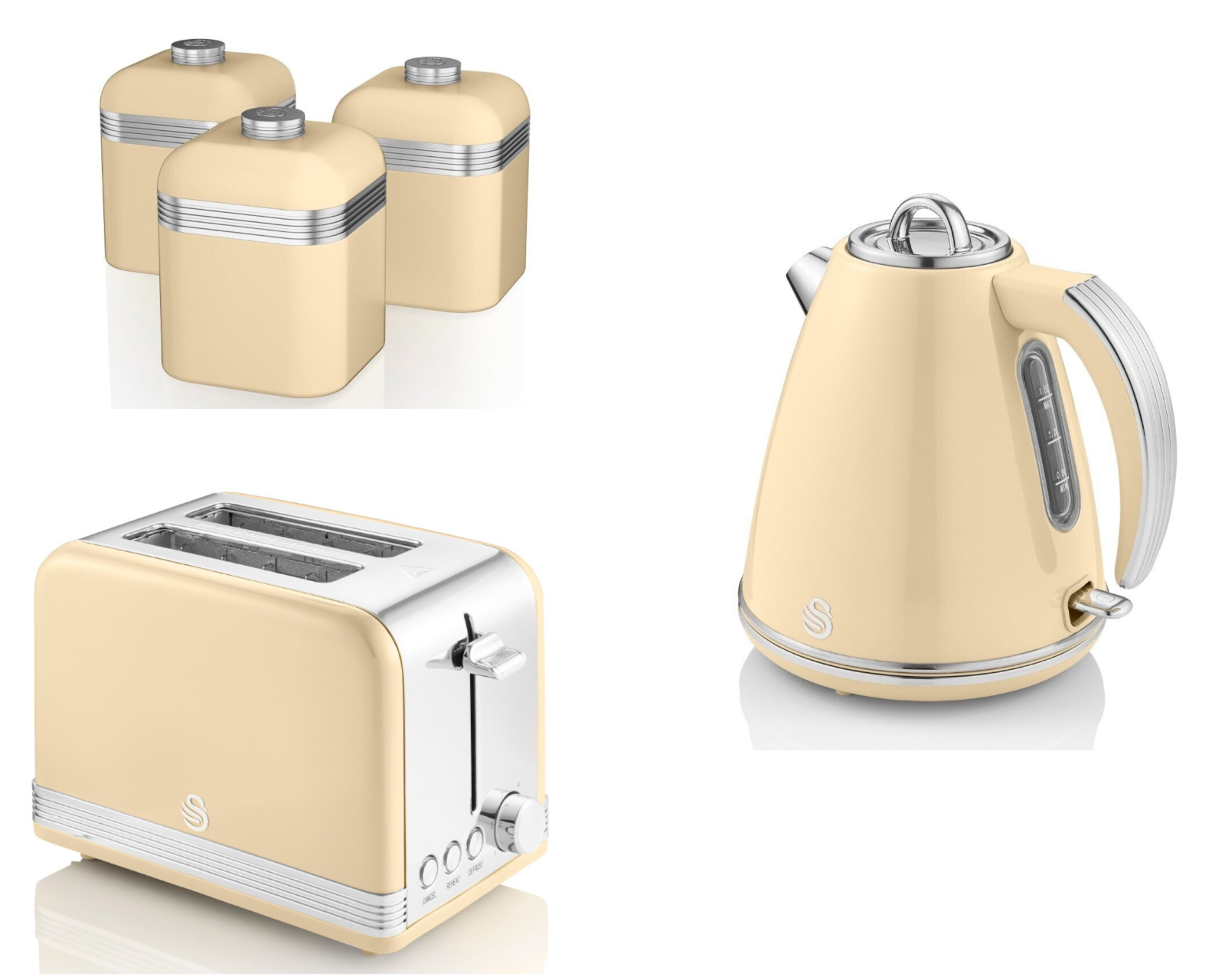 SWAN Retro Cream Jug Kettle 4 Slice Toaster & Canisters Matching Kitchen Set