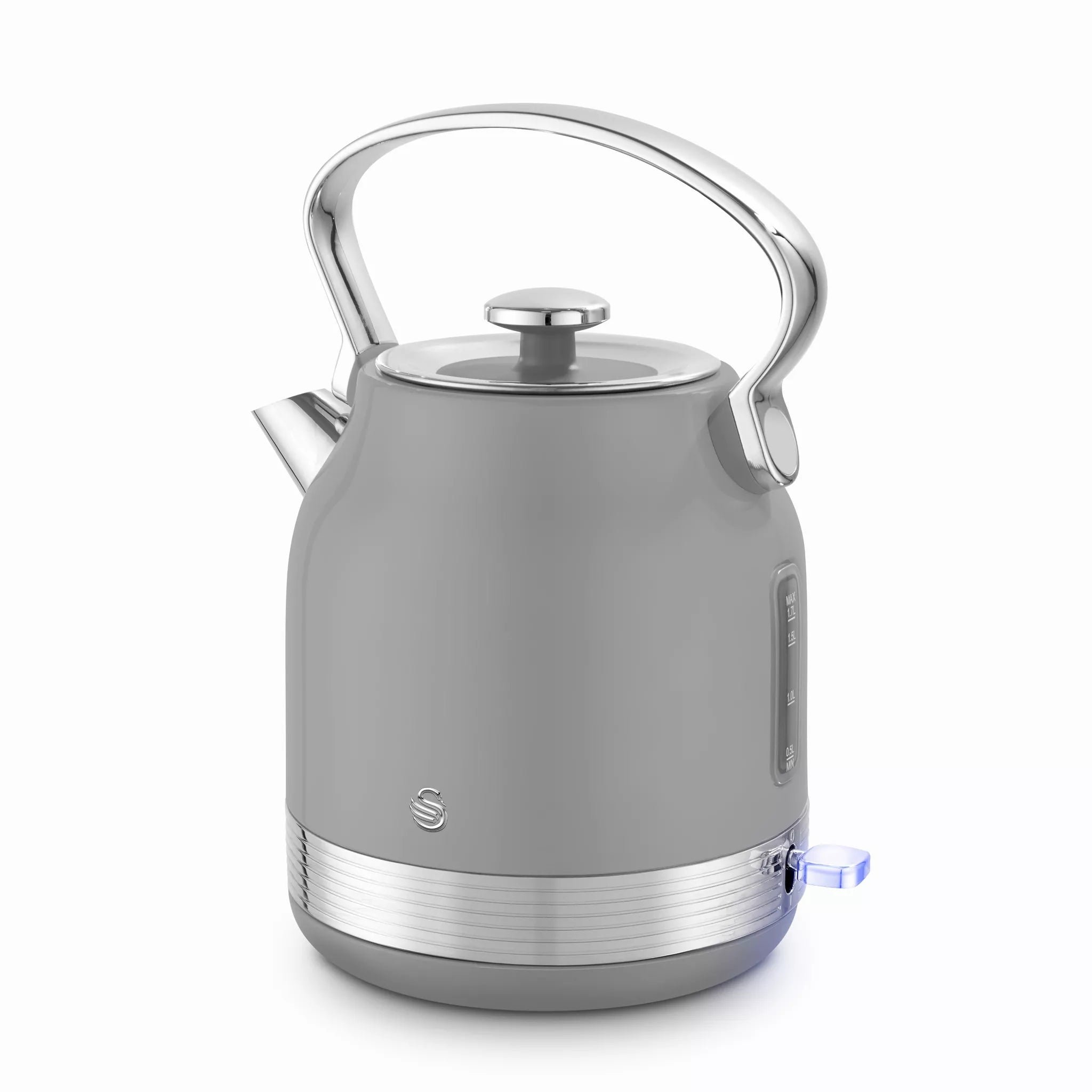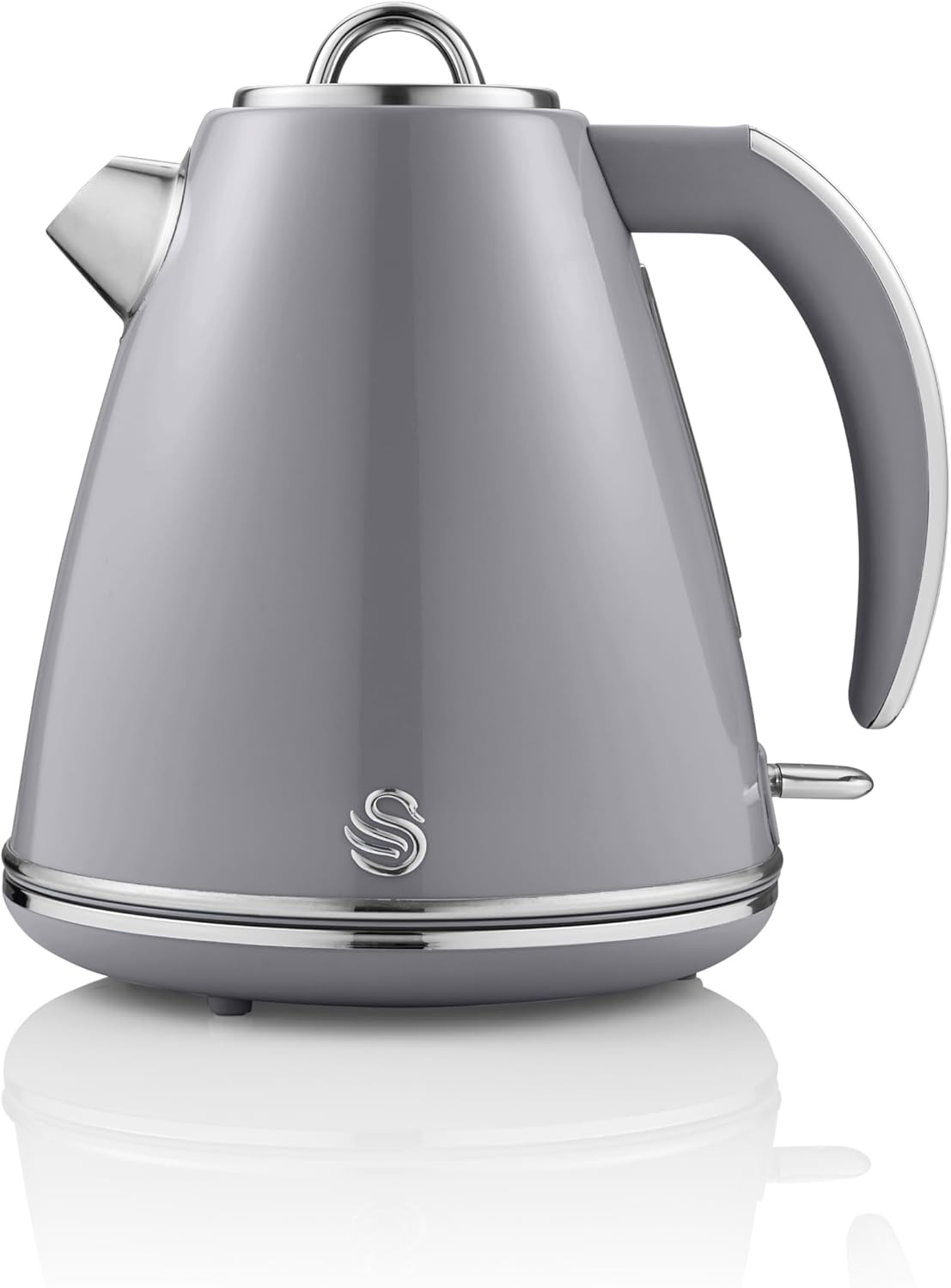 Swan SK19025GRY Retro Jug Kettle, Rapid Boil, 360 Base 1.7L, 3KW, Grey