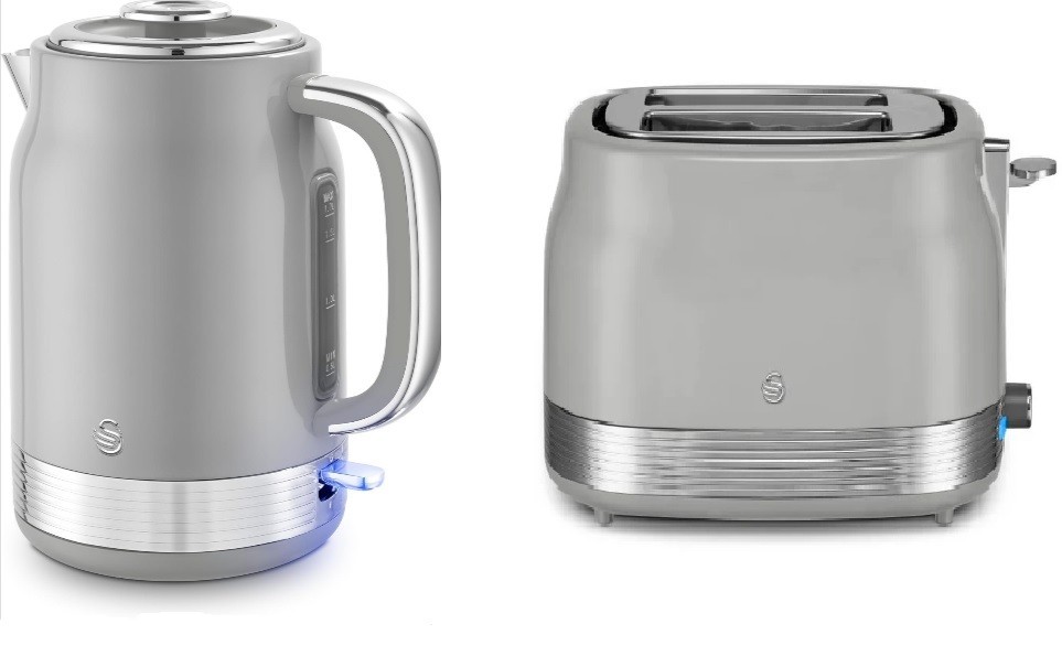 SWAN Retro 1.7L Kettle & 2 Slice Toaster SET GREY -SK19025GRY/ST19028GRY