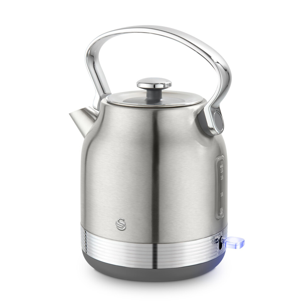 Swan SK14631SS Retro Traditional Kettle, Rapid Boil, Removable Limescale Filter, Easy Pour, 360 Degree Base, Water Indicator Window and Boil Dry Protection 1.7L, 3KW, Stainless Steel
